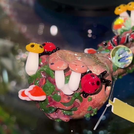 Esta hermosa pipa de @empireglassworks esfuerza por acercarte a la Tierra, con su diseño de vida, de insectos en primer plano. Como una rama o un tronco, esta cubierta con el verde del musgo y las enredaderas, una variedad de especies de hongos y los seres diminutos que la habitan.